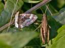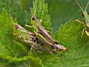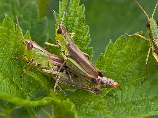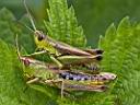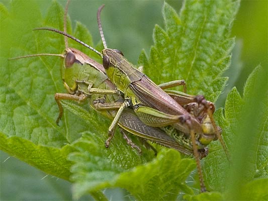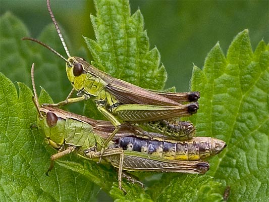 Grashüpfer ist hier bei der Paarung erwischt. Da sieht man schön, daß das