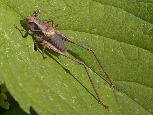 gleiches Tier | gewöhnliche Strauchschrecke Pholidoptera griseoaptera ohne Legeröhre vermutl. männl. |