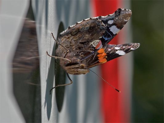 | Admiral (vanessa atalanta) auf Verkehrschild s. Edelfalter-im-Glemstal |