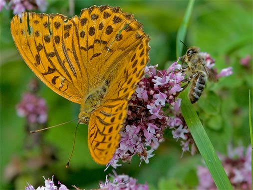 Kaisermantel (argynnis paphia) mit Biene auf Dost s. Edelfalter-im-Glemstal |