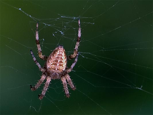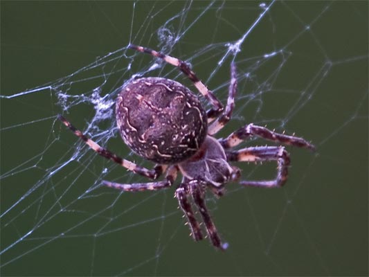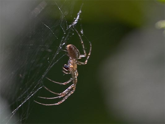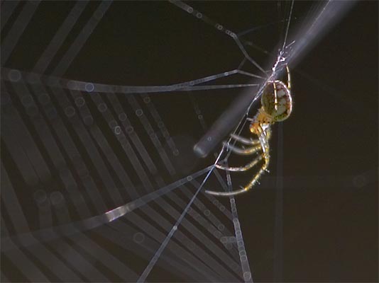 und Netz aus wie eine Gartenkreuzspinne, hat aber eine ganz andere Zeichnung.