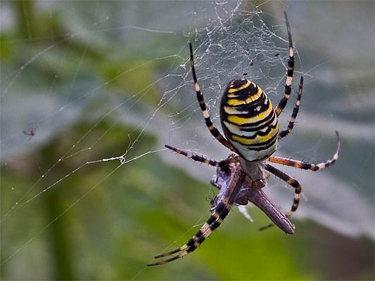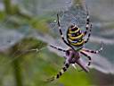 | argiope bruennichii Wespenspinne weibl., ca. 2 cm mit Beute Spinnen-im-Glemstal |