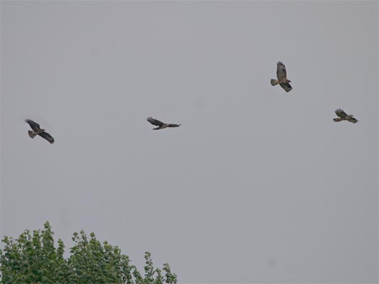 Querbinde. Offenbar besteht die "Standard-Mäusebussardfamilie" aus 4 Jungtieren