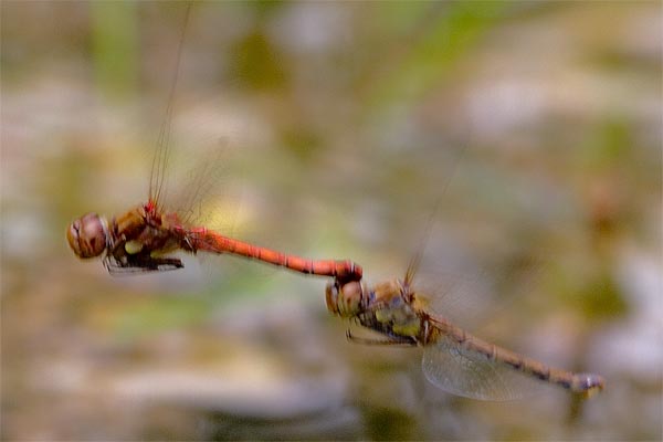 Sympetrum Vulgatum (gemeine Heidelibelle) Eiablage im Tandemflug |