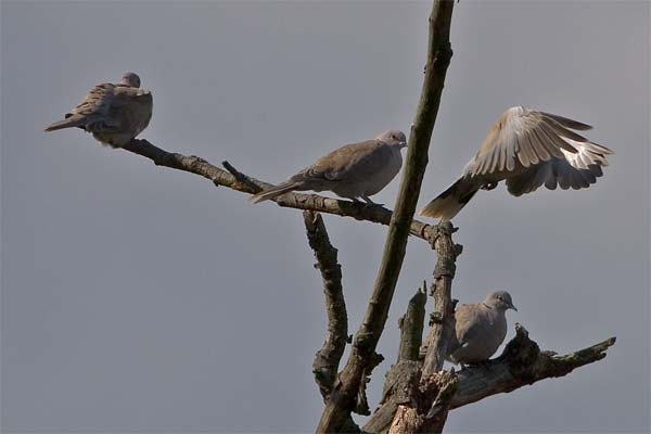 Der kleine Taubenschwarm auf dem Baum an der Talmühle sind Türkentauben.