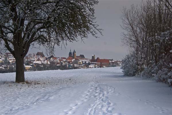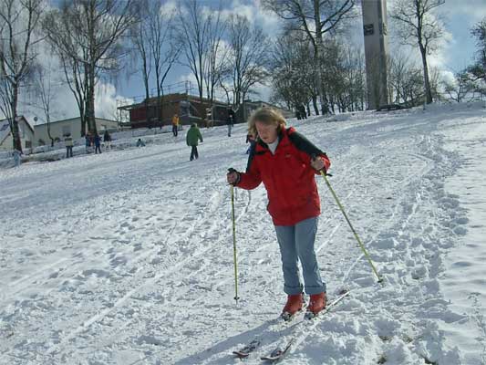 Skifahrer in Schwieberdingen bei der kath. Kirche |