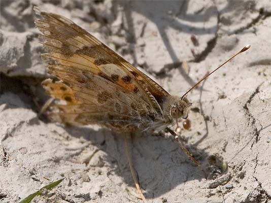Distelfalter (Vanessa Cardui) schon recht farblos ...mehr über unsere → Edelfalter im Glemstal |