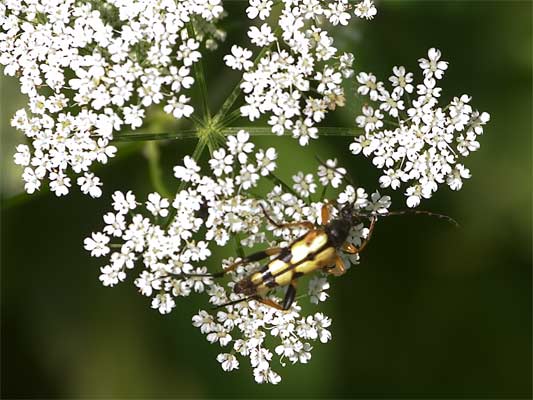 gefleckter Schmalbock (strangalia maculata) Familie Bockkäfer (Cerambycidae) ...mehr über unsere → Käferarten im Glemstal auf Doldenblütler mehr zu Apiaceae-im-Glemstal |
