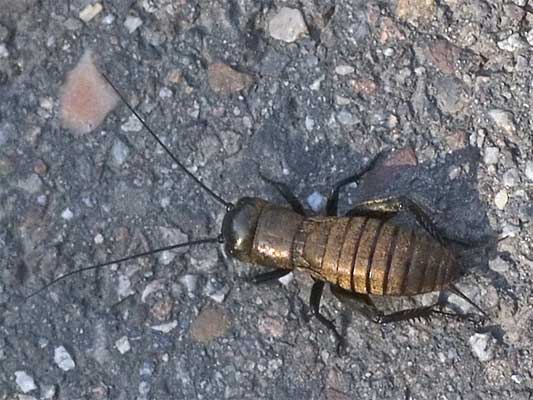 Feldgrille sieht dem erwachsenen Tier sehr ähnlich, hat aber noch keine Flügel,