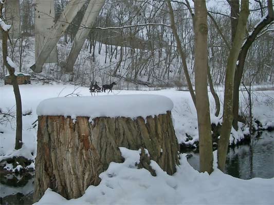 Pferdeschlitten unter der B10 Brücke über die Glems | Pferdeschlitten Ausschnittsvergrösserung |
