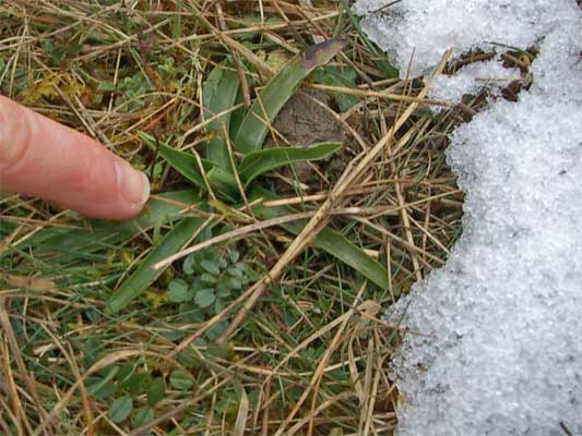 Im März blühen auf der verschneiten Heide I im Siegental noch keine Orchideen. Aber man kann die Pflanzen schon erkennen.