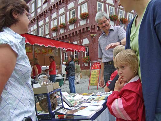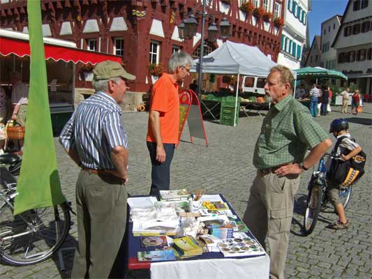 macht auf dem Marktplatz von Markgröningen Werbung. Bei der Videopräsentation