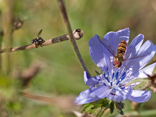 Hain-Schwebfliege (episyrphus balteatus) s. Schwebfliegen-im-Glemstal auf Wegwarte (Cichorium intybus) → Asteraceae-im-Glemstal |