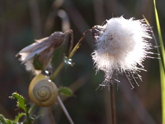 Schnecke und Blume | Wermut?? Artemisia absinthium ist es auf jeden Fall nicht! | Steinhummel? auf Kohl-Kratzdistel? mit Krabbenspinne? in Lauerstellung | irgendeine Distel |