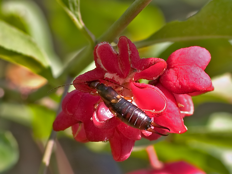 Die Früchte des europäischen Pfaffenhütchens erinnern an die Kopfbedeckung katholischer Geistlicher. Daher der Name. Die Samen werden im Winter gerne von Vögeln gefressen. Das hat ihm auch den Spitznamen "Rotkehlchenbrot" eingebracht. Unser wilder Hopfen wuchs am Wegrand zwischen Weinbergen.