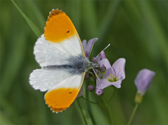 | Aurorafalter männl. (anthocaris cardamines) → Weisslinge-im-Glemstal auf Wiesen-Schaumkraut (Cardamine pratensis) → Kreuzblütler-im-Glemstal |