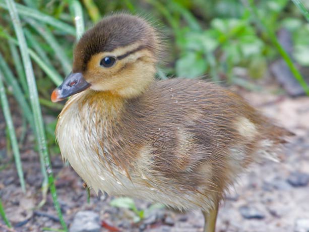 eindeutig eine junge Mandarinente (Aix galericulata) |