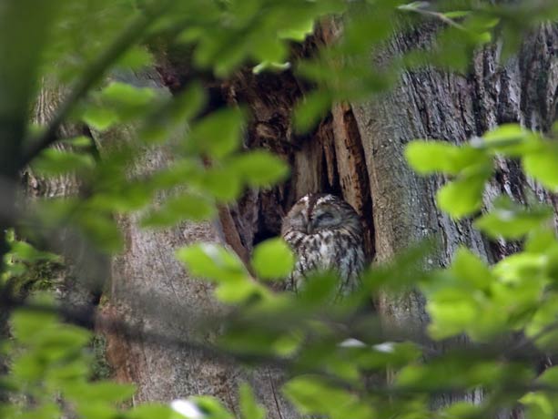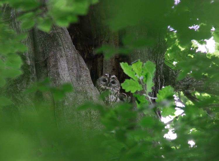 in diesem Baum. Auch wird er gelegentlich mit einem zweiten Waldkauz dort gesichtet. (Honni