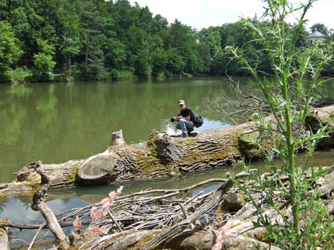 sonniger Tag und wir haben auf den Baumstämmen im Bärensee neun (!) bis ca. 1 m
