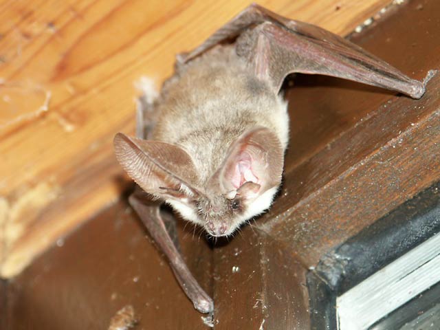 kein Abendsegler. Mückenfledermaus? Fransenfledermaus? Vermutlich großes Mausohr (Myotis myotis) → Fledermäuse-im-Glemstal |