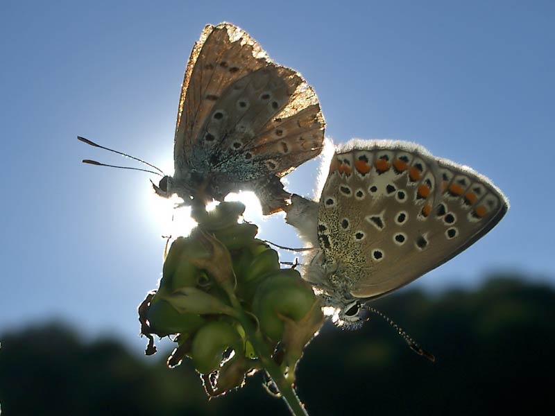 ist das Männchen des gemeinen Bläulings, wenn es die Flügel