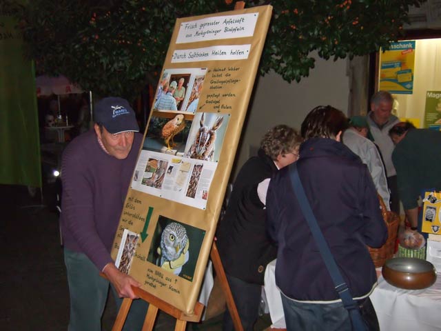 Wolfgang hatte seine Äpfel zur Verfügung gestellt. "100% ungespritzt". Mit dem Erlös unterstützen wir die Greifvogelpflegestation in Bad Friedrichshall.