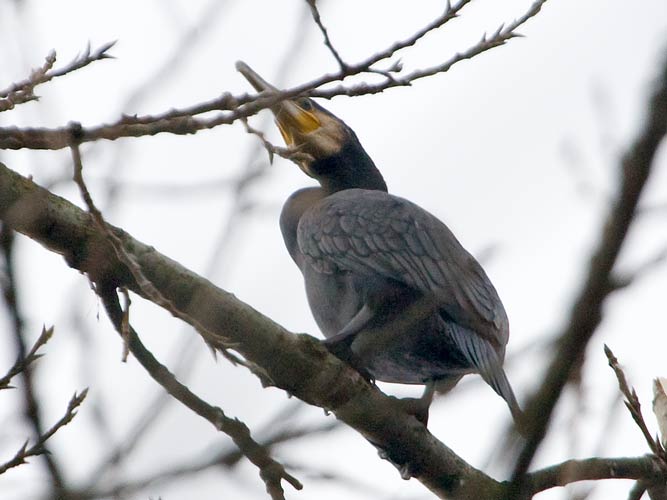 Baum saßen drei Kormorane. Nur der links hatte so einen weißen Bauch. |