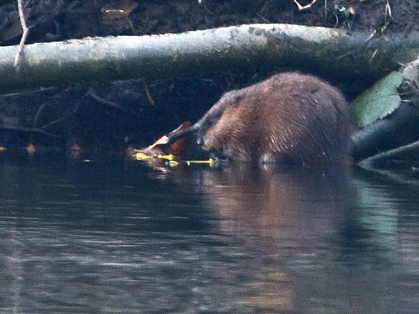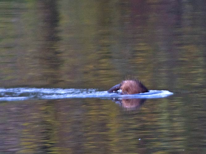 ...er futtert etwas | ...er quert die Enz tagsüber | ...er schwimmt tagsüber am Ufer der Enz entlang | wenn er sich gestört fühlt, taucht er sofort ab | futtert irgendwas am Ufer versteckt |