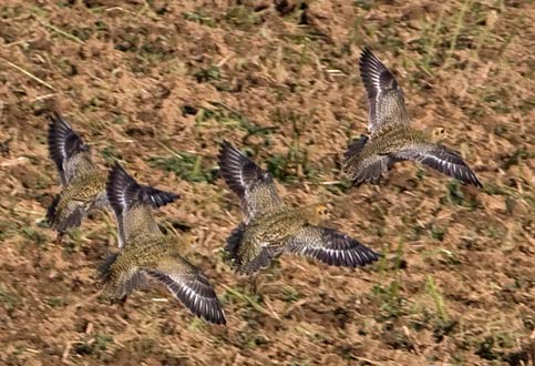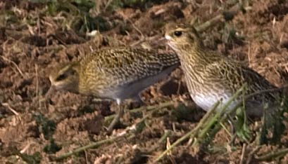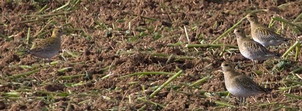 und dann vor uns auf einem umgepflügten Acker landete: die Goldregenpfeifer. Die