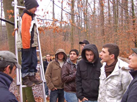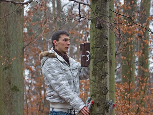 | Max hängt einen Nistkasten auf | Wozu sind Nistkästen gut? | Die Bäume im Nutzwald
