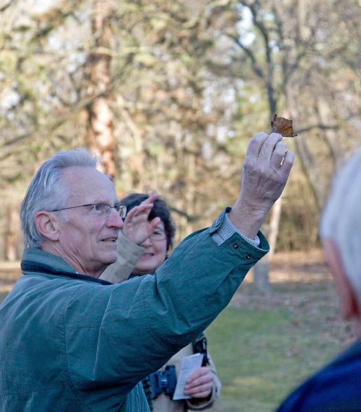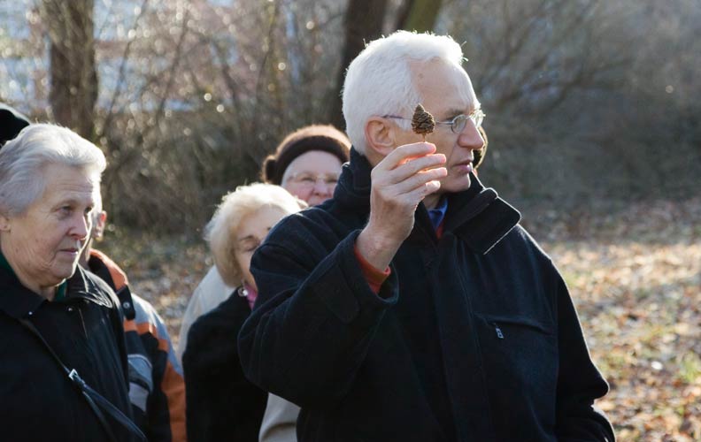 Günter Breuer zeigt einen Mammutbaumzapfen |