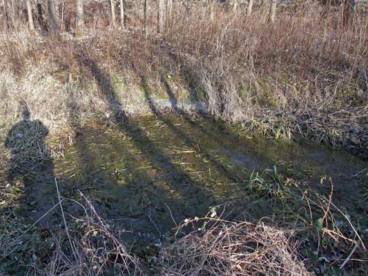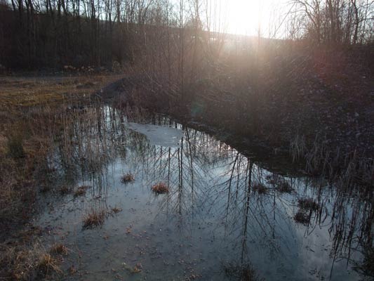 NABU-Teich. Quasi halb eingefroren. Links sieht man die Eisdecke → Grasfrosch im Glemstal → NABU-Teich Markgröningen |