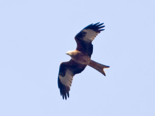 | Rotmilan 1: kreiste über dem NABU-Stückle. Evtl. ist das noch das Jugendkleid Beide Rotmilane kreisten dann kurz gemeinsam → Rotmilan im Glemstal |