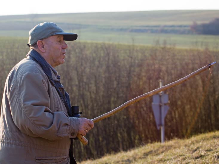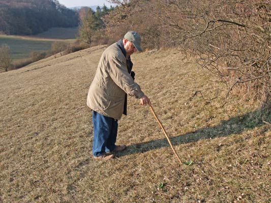 Ernst Seitz zeigt Küchenschellen. An dieser Stelle sind schon einige Blüten geöffnet | Ernst Seitz an der