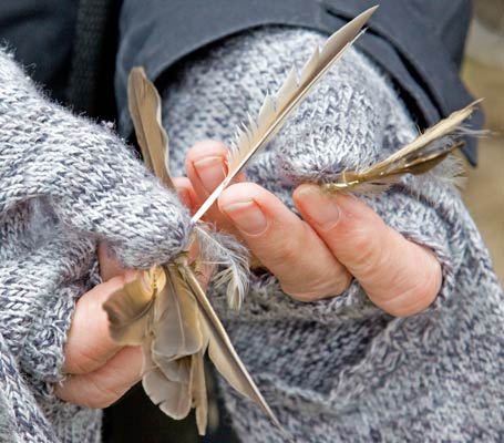 die Federn wurden bestimmt als wahrscheinlich von einer Singdrossel | ruhender Pol |
