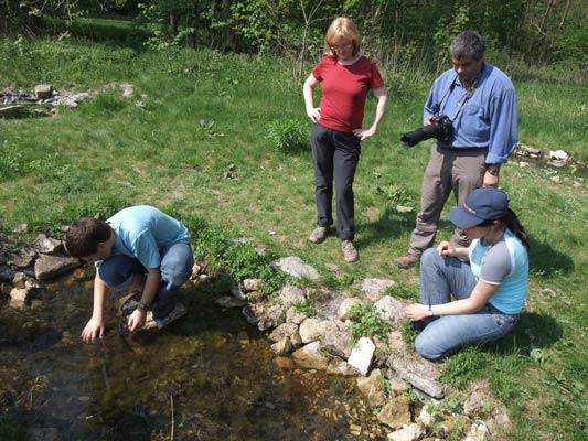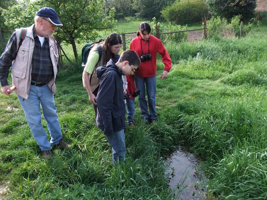 | kleiner Teich am Weg | Zählung der Feuersalamanderlarven | Naemi hat 9
