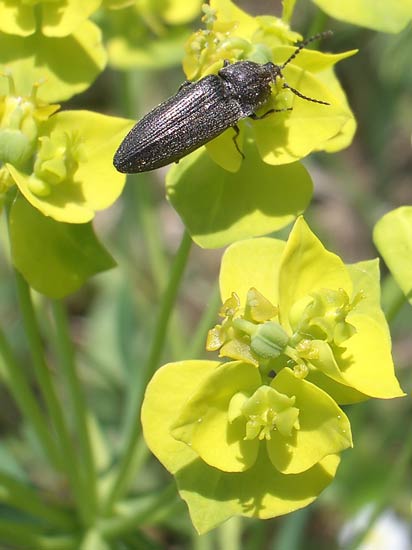 Wald-Humusschnellkäfer (Ectinus aterrimus) auf Zypressen-Wolfsmilch (Euphorbia cyparissias) Fam. Wolfsmilchgewächse (Euphorbiaceae) ... mehr über unsere → Käferarten im Glemstal → Wolfsmilchgewächse im Glemstal |