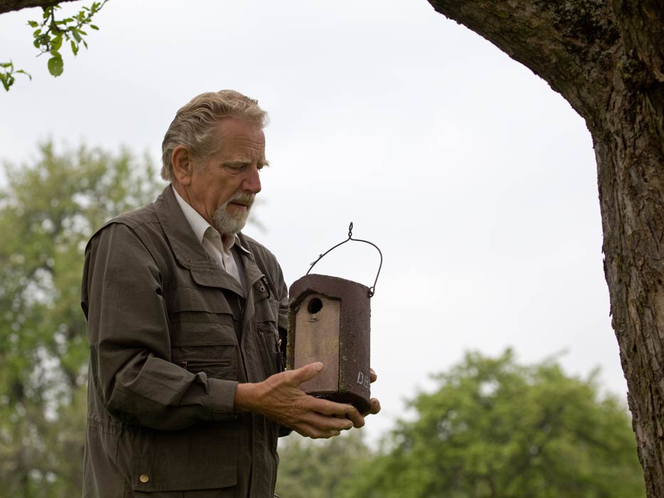 Oscar Josephy zeigt das Innere vom Nistkasten | der