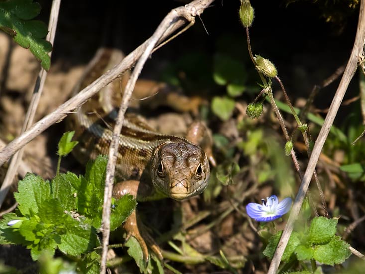 persischer Ehrenpreis (Veronica persica) weibliche Zauneidechse (lacerta agilis) ...mehr über unsere → Wegerichgewächse im Glemstal → Zauneidechsen im Glemstal |
