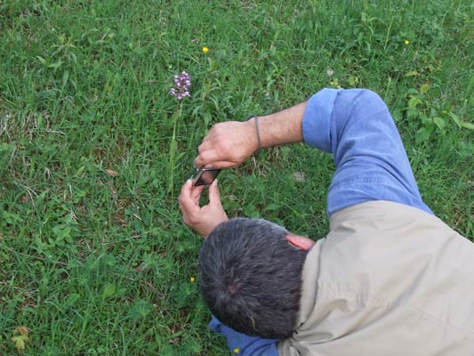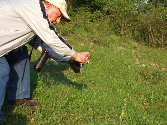 damalige NABU-Vorsitzende Hr. Maile die erste Spinnenragwurz