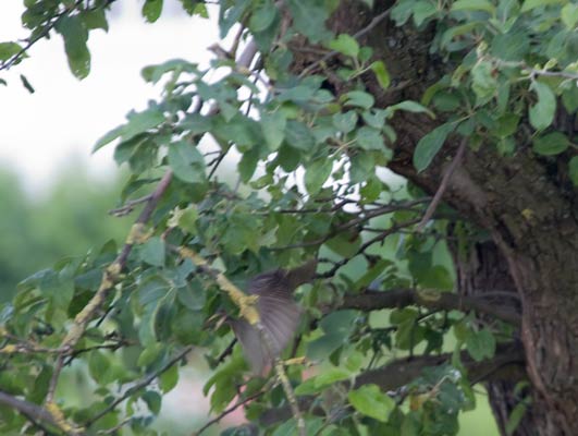 Grauschnäpper (Muscicapa striata) in unserer Zwetschge im Flug ...mehr über unsere → Grauschnäpper im Glemstal |