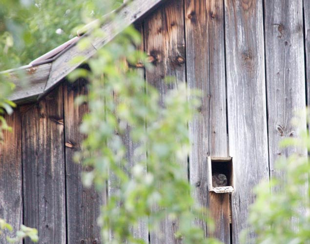 Schleiereulenkasten in der Scheune mit Bewohner |