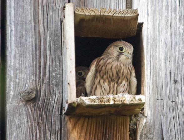zwei junge Turmfalken im Schleiereulenkasten ...mehr über unsere |