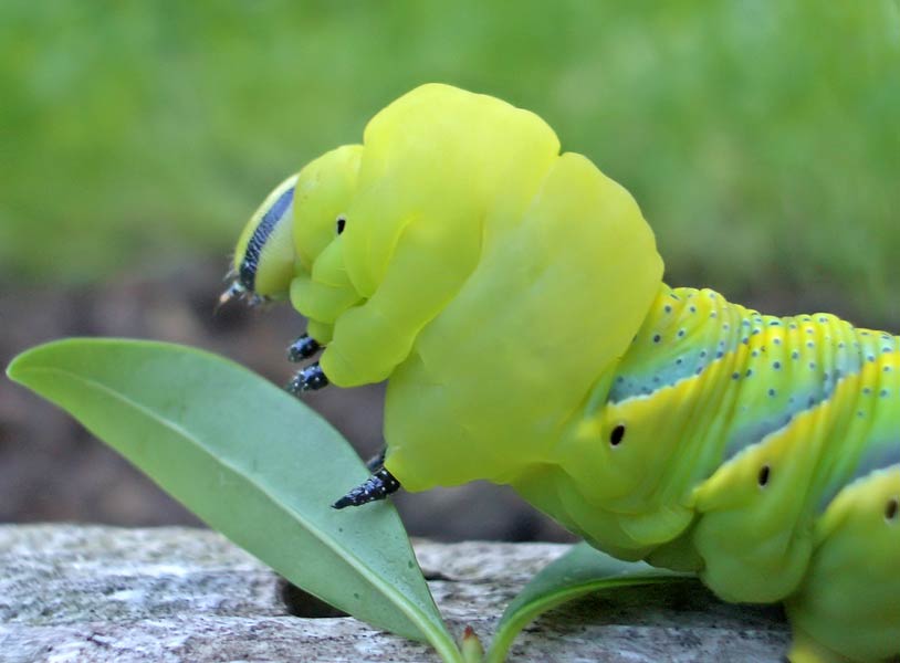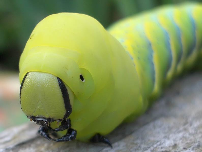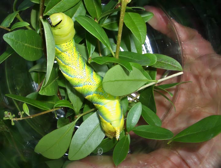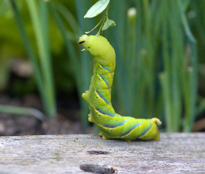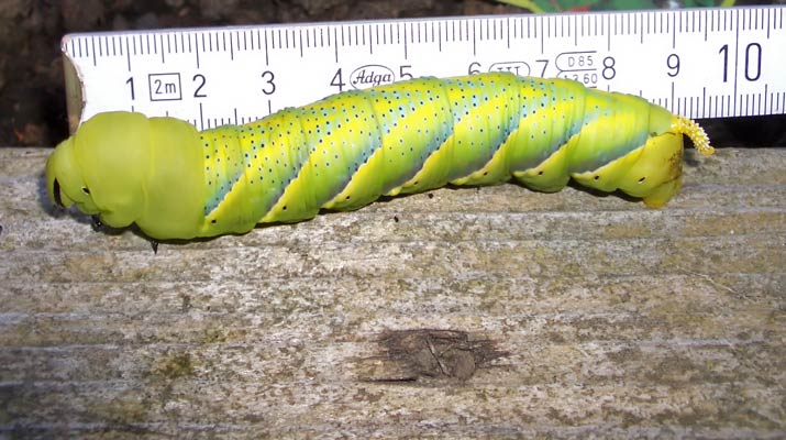 Die Raupe kann sich aufrichten Totenkopfschwärmer (Acherontia atropos) ...mehr über unsere → Schwärmer im Glemstal |