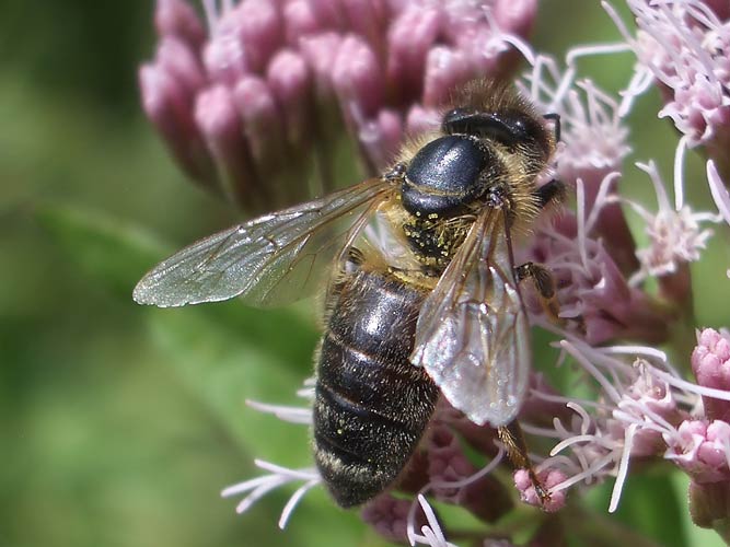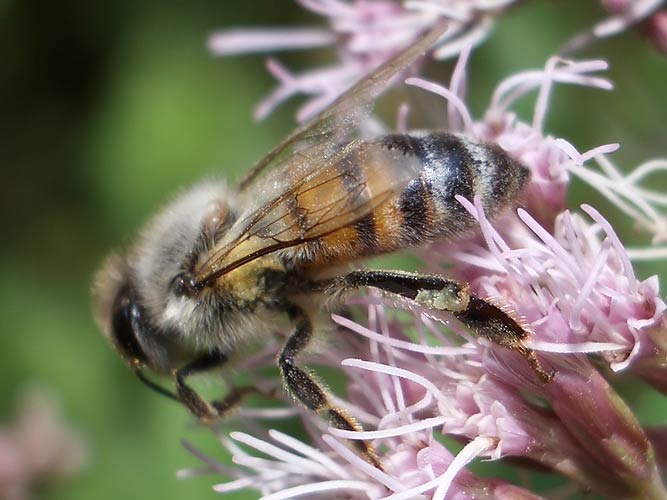 (Andrena sp.) bestimmt (Danke an Norbert Baasner für die Gattungsbestimmung) "Diese Biene ist eine Honigbiene" (Danke an Karl-Heinz Schwammberger für diesen Hinweis zur Artbestimmung in 3/2012) auf Wasserdost (Eupatorium cannabinum) ...mehr über unsere → Hautflügler im Glemstal → Korbblütengewächse im Glemstal |
