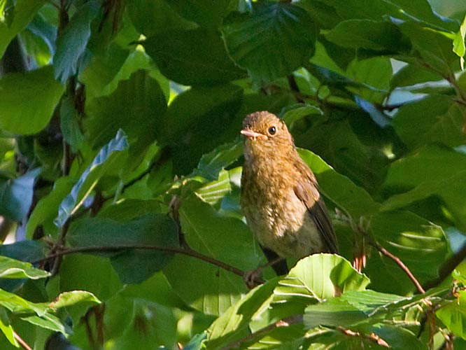 ein gar nicht scheuer kleiner brauner Vogel im Zeilwald. Eine junge Amsel? Ronald Meinert meint mir zu diesem Foto: "Falls die junge Amsel klein gewesen ist, könnte es auch ein Rotkehlchen im Übergangskleid sein? Ist für mich aber schwierig zu bestimmen, da man die Bewegungen des Vogels nicht sieht." Hm! War schon recht klein. Saß eher lange recht unbeweglich da. |