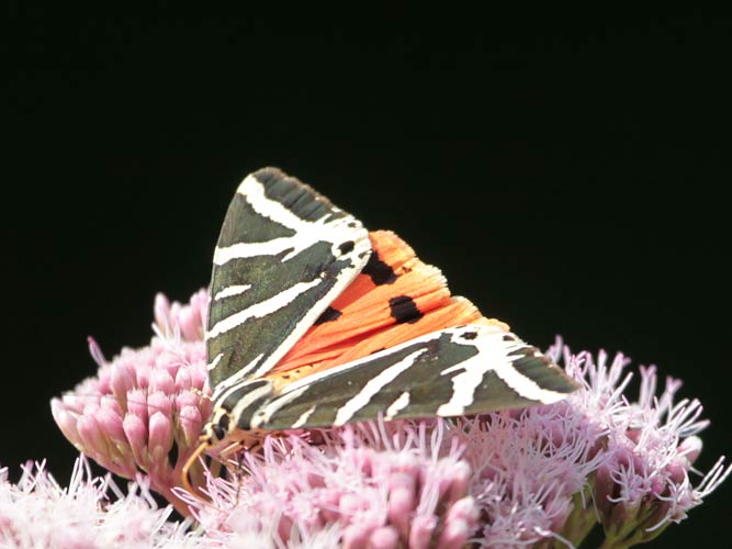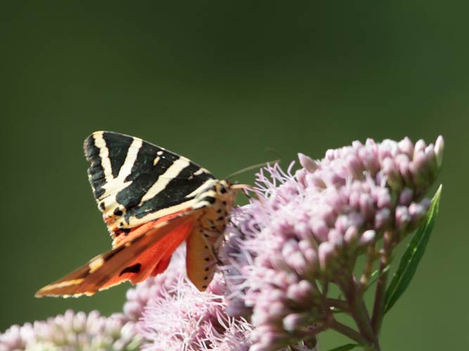russischer Bär (euplagia quatripunctaria) auf Wasserdost (Eupatorium cannabinum) ...mehr über unsere → Bärenspinner im Glemstal → Korbblütengewächse im Glemstal |