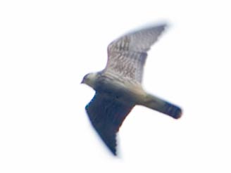 derselbe Vogel: hellweißer Kopf, rote Hosen, falkenartiger Flug: ein erwachsener Baumfalke (falco subbuteo) ...mehr über unsere → Baumfalken im Glemstal |