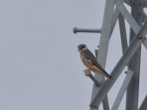 Einer der Baumfalken hat einen hellweißen Kopf und intensiv rote Hosen. Zu diesem Exemplar schreibt mir Ronald Meinert: "der Baumfalke mit den roten Hosen und der rein weißen Wange muss ein adultes Individuum sein. Die Oberseite der Flügel (Hand- und Armschwingen) muss dabei komplett grau (eher dunkleres Grau) sein."