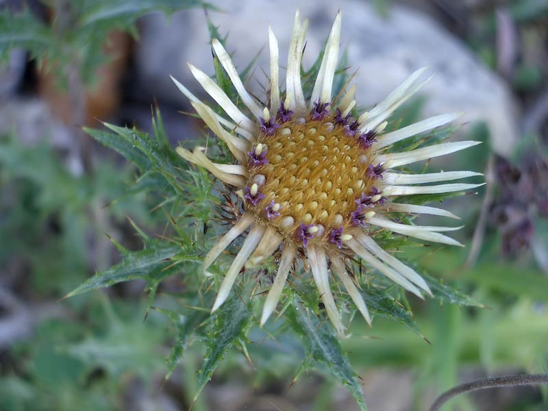 Golddistel (Carlina vulgaris): am Rand lauter kleine wunderschöne Mini-Röhrenblüten ...mehr über unsere → Korbblütengewächse im Glemstal |